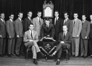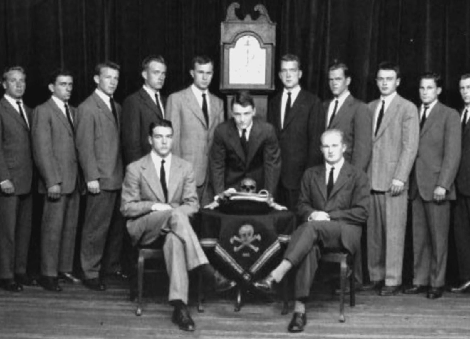 Geheimbünde: 2. Die Erben der TemplerGruppenfoto der «Skull and Bones» mit dem späteren US-Präsidenten George W. BushBild: © SRF/ZDF