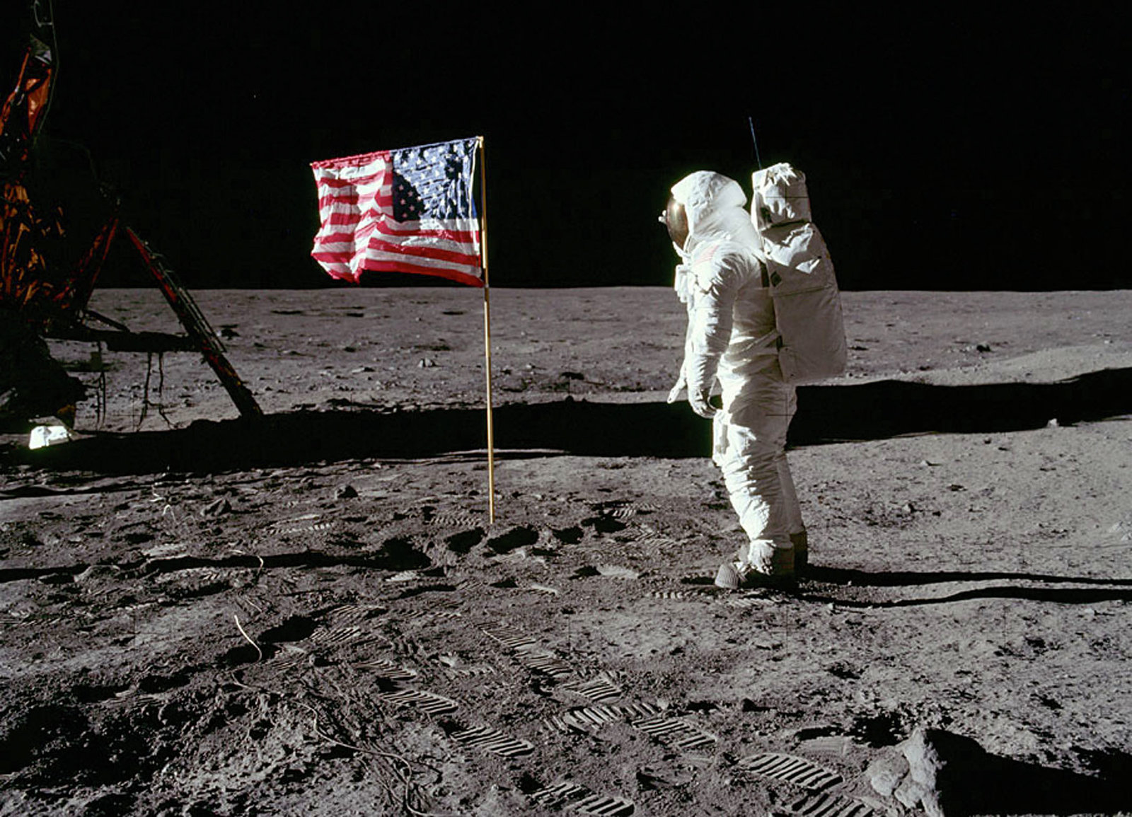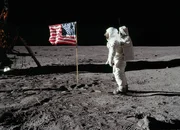 Geheimbünde: 3. Die Masken der VerschwörerDas offizielle Foto der NASA von der ersten Mondlandung: Verschwörungstheoretiker bezweifeln, dass dieses Bild tatsächlich auf dem Mond aufgenommen wurde.Bild: © SRF/ZDF