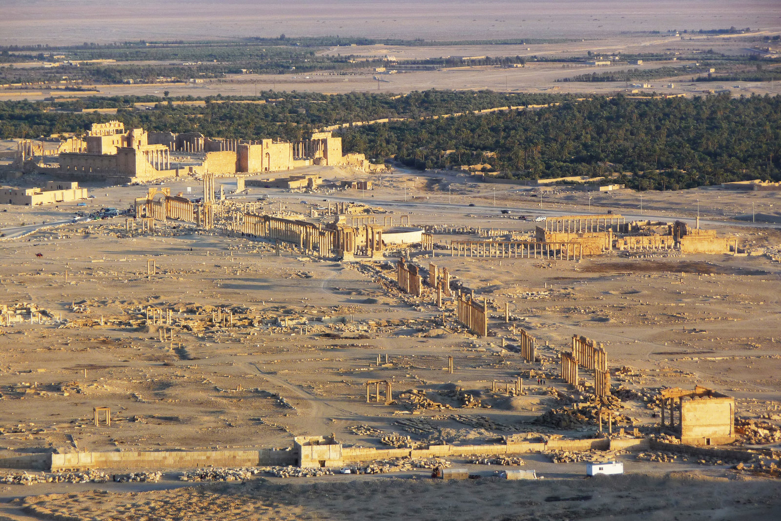 Die Rettung PalmyrasDie antike Wüstenstadt Palmyra mit der Säulenallee nach der Zerstörung durch den IS. Forscher aus aller Welt diskutieren die Frage, ob Palmyra wieder aufgebaut werden kann und soll.Bild: © ZDF und Martin Papirowski