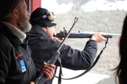 Das Monster von SpitzbergenAlle Expeditionsmitglieder, die mitgehen, um auf Spitzbergen die Reste des riesigen Pliosauriers zu bergen, erhalten vorher Schusstraining. So wappnen sie sich, sollte einer der zahlreichen Eisbären sie während der Grabungen angreifen.Bild: © ZDF und Atlantic Production Ltd.