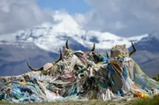 Brahmaputra - Wasser vom HimalajaEine heilige Stätte mit Yakschädeln zwischen dem Kailash und dem See Masarovar. Sowohl der Berg als auch der See wurden für den Ursprung des Brahmaputra gehalten.Bild: © phoenix/ZDF/Klaus Feichtenberger