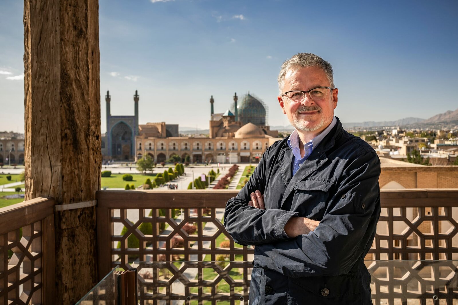 Welten-Saga: 3. Die Schätze des OrientsChristopher Clark am Imam-Platz in Isfahan.Bild: © ZDF und Andreas Steffan.
