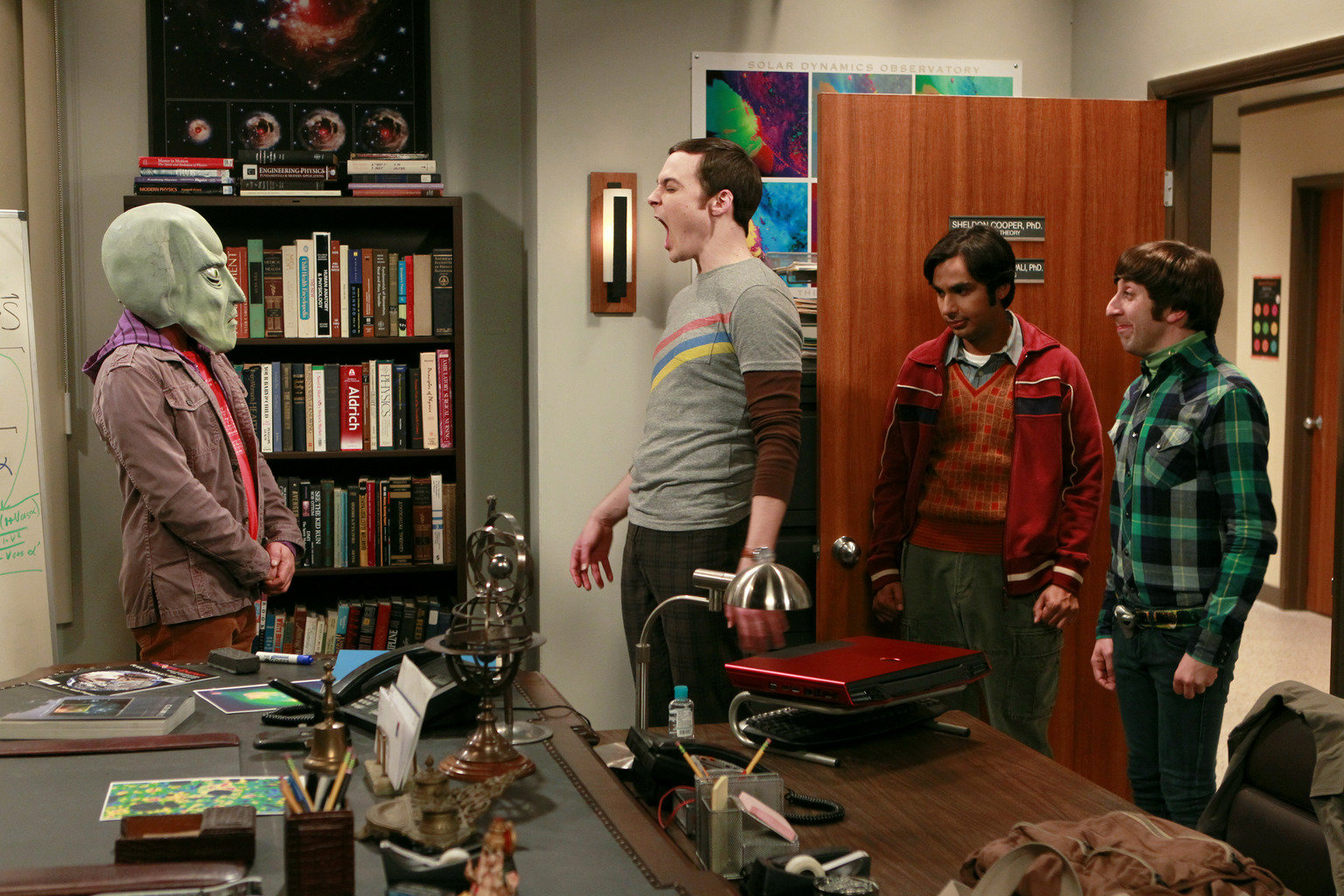 Ein guter KerlSheldon (Jim Parsons) wird von seinen Freunden mit einem Streich zu Halloween reingelegt. Nun versucht er sich an ihnen zu rächen ...Bild: © Warner Bros. Television Lizenzbild frei