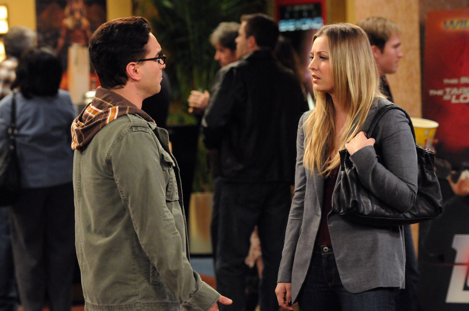 Zwei komische VögelLeonard (Johnny Galecki, l.) und Penny (Kaley Cuoco, r.) gehen als Freunde zusammen ins Kino. Anfangs ist Leonard enttäuscht, dass es kein Date ist, doch bald hat er mehr Spaß mit Penny als damals, als sie noch ein Paar waren ...Bild: © Warner Bros. Television Lizenzbild frei