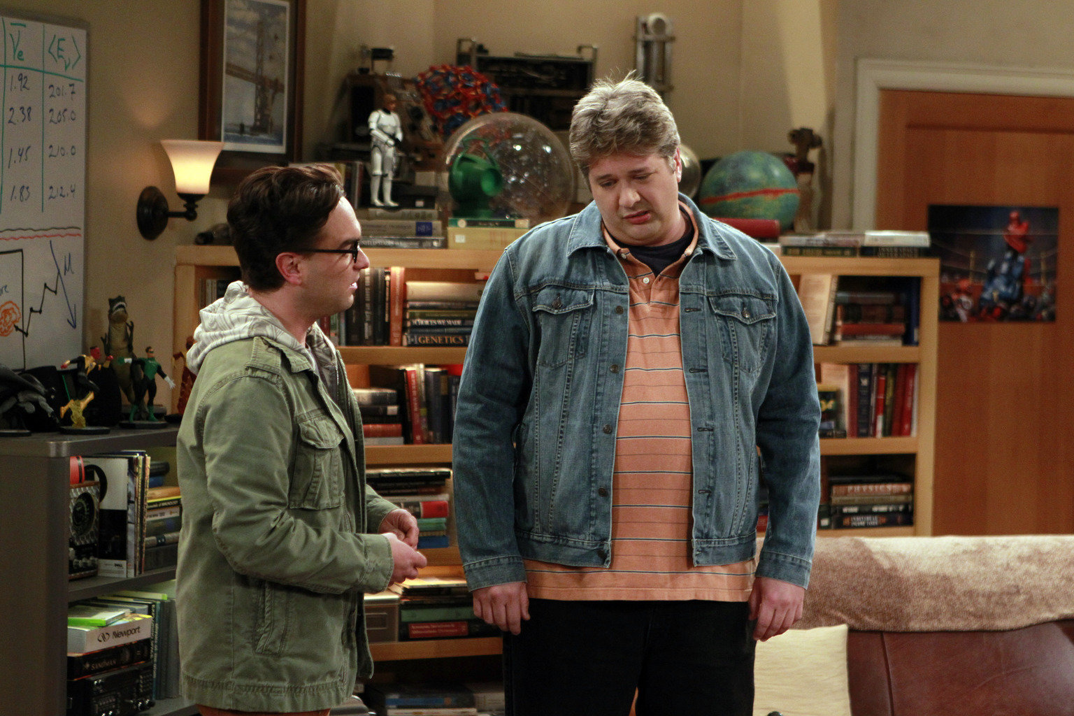 Das Speckerman-TraumaLeonard (Johnny Galecki, l.) muss sich mit seinen Ängsten auseinandersetzten, als ihn Jimmy Speckerman (Lance Barber, r.), der ihn in der High School immer tyrannisiert hat, kontaktiert ...Bild: © Warner Bros. Television Lizenzbild frei