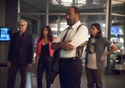 Zwei WeltenWährend Joe (Jesse L. Martin, 2.v.r.) noch mit der Vorstellung zu kämpfen hat, dass es Parallelwelten gibt, erkennen Dr. Stein (Victor Garber, l.), Iris (Candice Patton, 2.v.l.) und Cisco (Carlos Valdes, r.), dass sie sich das Wissen des anderen Flashs zu Nutze machen sollten ...Bild: © 2015 Warner Brothers. Lizenzbild frei