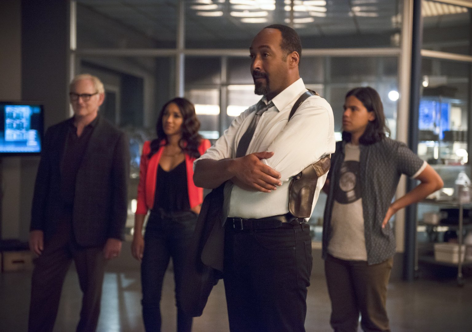 Gefahr aus der ZukunftWährend die Probleme auf Joe (Jesse L. Martin, l.), Barry (Grant Gustin, M.) und Iris (Candice Patton, r.) nur so hereinprasseln, entscheidet sich Caitlin dazu, Jays Doppelgänger zu finden, um ihm das Leben zu retten. Doch das wird schwerer als vermutet ...Bild: © 2015 Warner Brothers. Lizenzbild frei