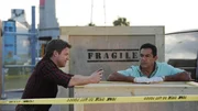 Das Böse in der KunstJim (Matt Passmore, l.) und Carlos (Carlos Gomez) müssen herausfinden, wer den steinreichen Kunstförderer Richard Crawford umgebracht hat, dessen Leiche in einer Kiste im Hafen aufgetaucht ist.Bild: © TVNOW