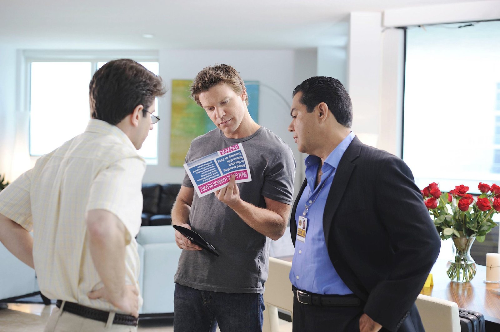 Aphrodites Ärger(V. li.) Daniel (Jordan Wall), Jim (Matt Passmore) und Carlos (Carlos Gomez) suchen im Mordfall Grayson nach einer verwertbaren Spur.Bild: © Super RTL