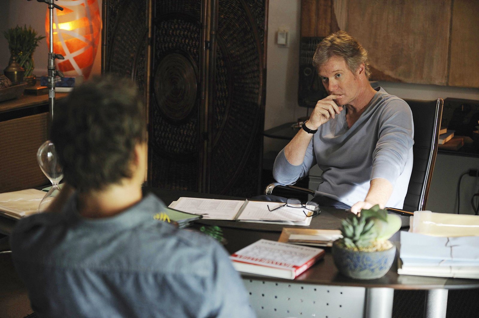 Die dunkle Seite der LeidenschaftSenator Chapman (Scott Cohen) wird von Jim und Carlos zum Tod seiner Geliebten befragt.Bild: © RTL