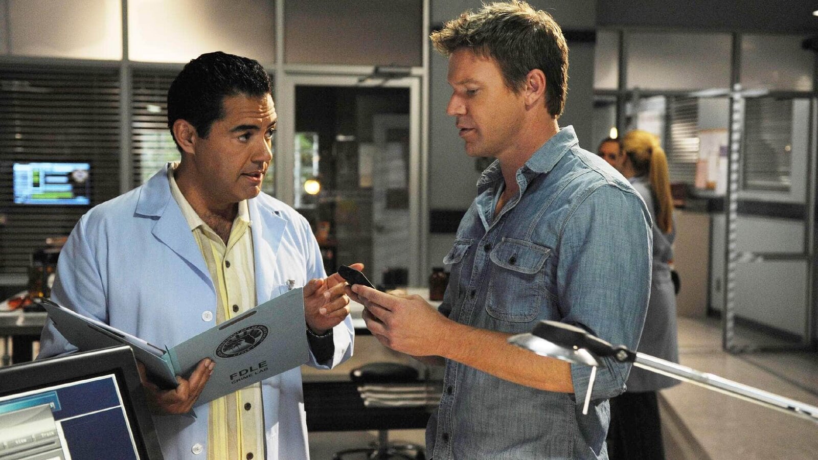 Der Hunger im SüdenCarlos (Carlos Gímez, l.) informiert Jim (Matt Passmore) über seine ersten Ermittlungsergebnisse im Mordfall Tony Acosta.Bild: © TVNOW