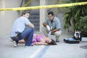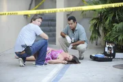 Die dunkle Seite der LeidenschaftDie Geliebte des Senators Donald Chapman, Chloe Perkins (Jodi Darren lieg.), ist vor einem Hotel tot aufgefunden worden. Jim (Matt Passmore, l.) und Carlos (Carlos Gímez) untersuchen die Leiche und müssen herausfinden, ob es sich um einen Mord handelt.Bild: © Super RTL