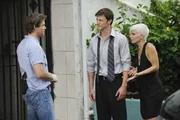 So stirbt kein GentlemanJim (Matt Passmore, li.) befragt zwei mögliche Zeugen (Steven Helmkamp, Kristin de la Renta) nach ihren Beobachtungen zur Tatzeit.Bild: © TVNOW / So stirbt kein Gentleman