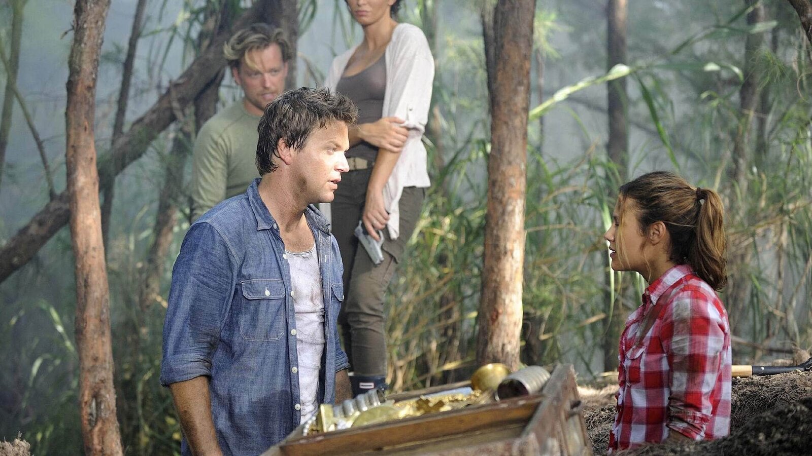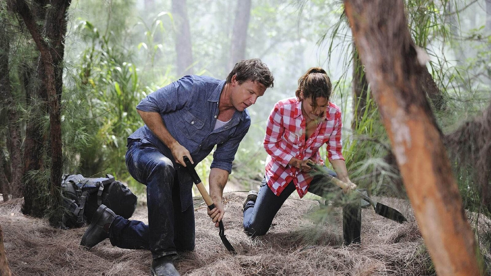Blut für eine LegendeJim (Matt Passmore) und Callie (Kiele Sanchez) graben in dem Mangrovenwald nach dem sagenumwobenen Schatz, der sich auf dem gesunkenen spanischen Schiff Magdalena befunden haben soll.Bild: © TVNOW