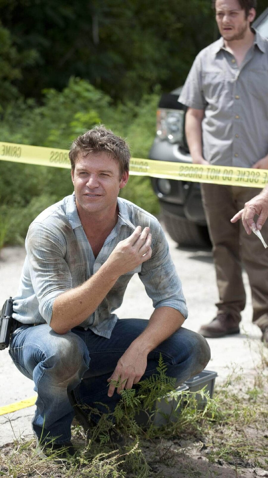 Reptilien im ParadiesDetective Jim Longworth (Matt Passmore) findet den Kaiman, der den Kopf der Leiche gefressen hat und erschießt das Tier, um den Mageninhalt untersuchen zu lassen.Bild: © Super RTL