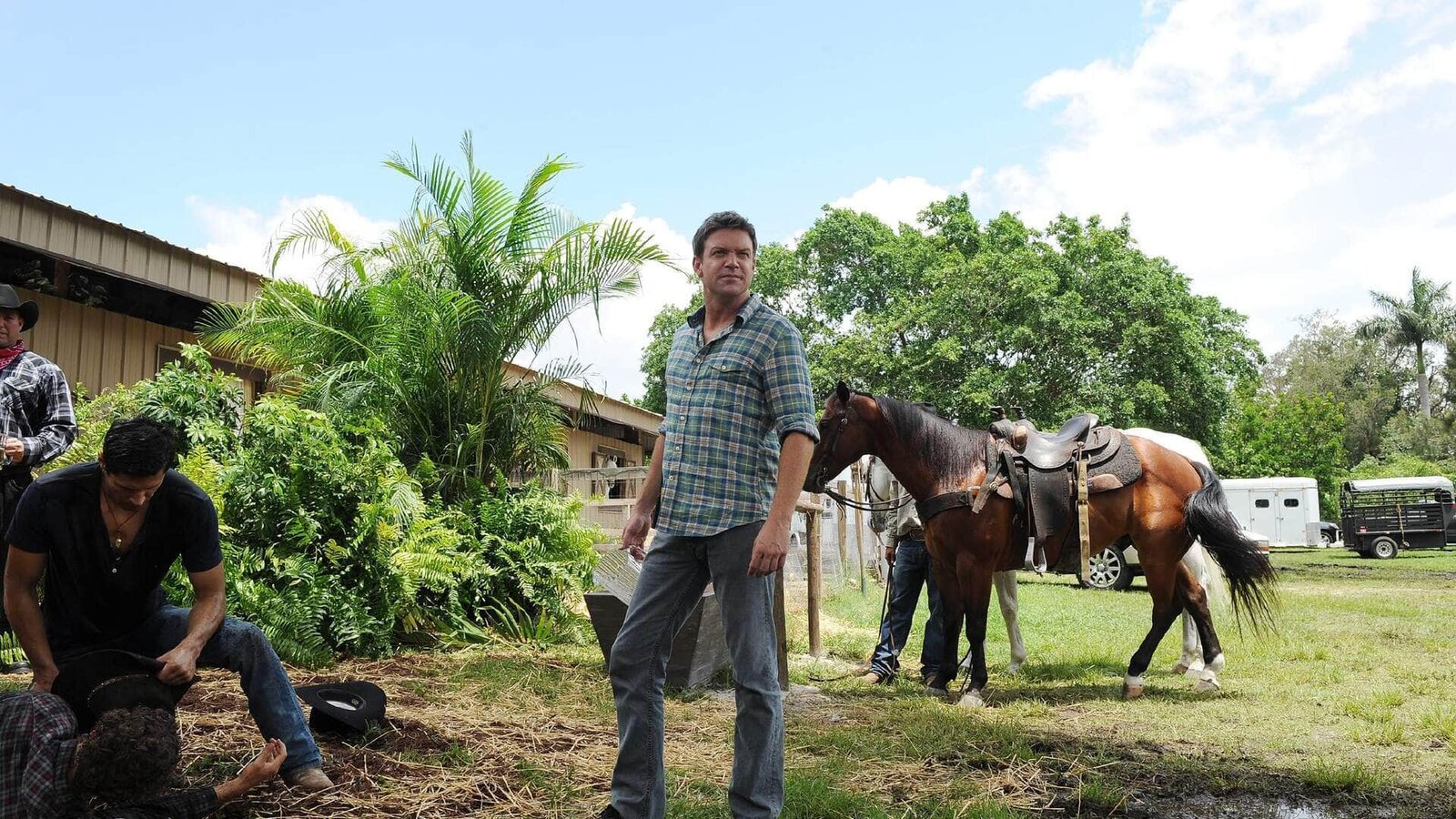 Blutiger WesternJim Longworth (Matt Passmore) wird zu einem Tatort auf einer Ranch gerufen, wo er einen toten Cowboy und jede Menge Streit zwischen den Nachbarn vorfinden.Bild: © TVNOW