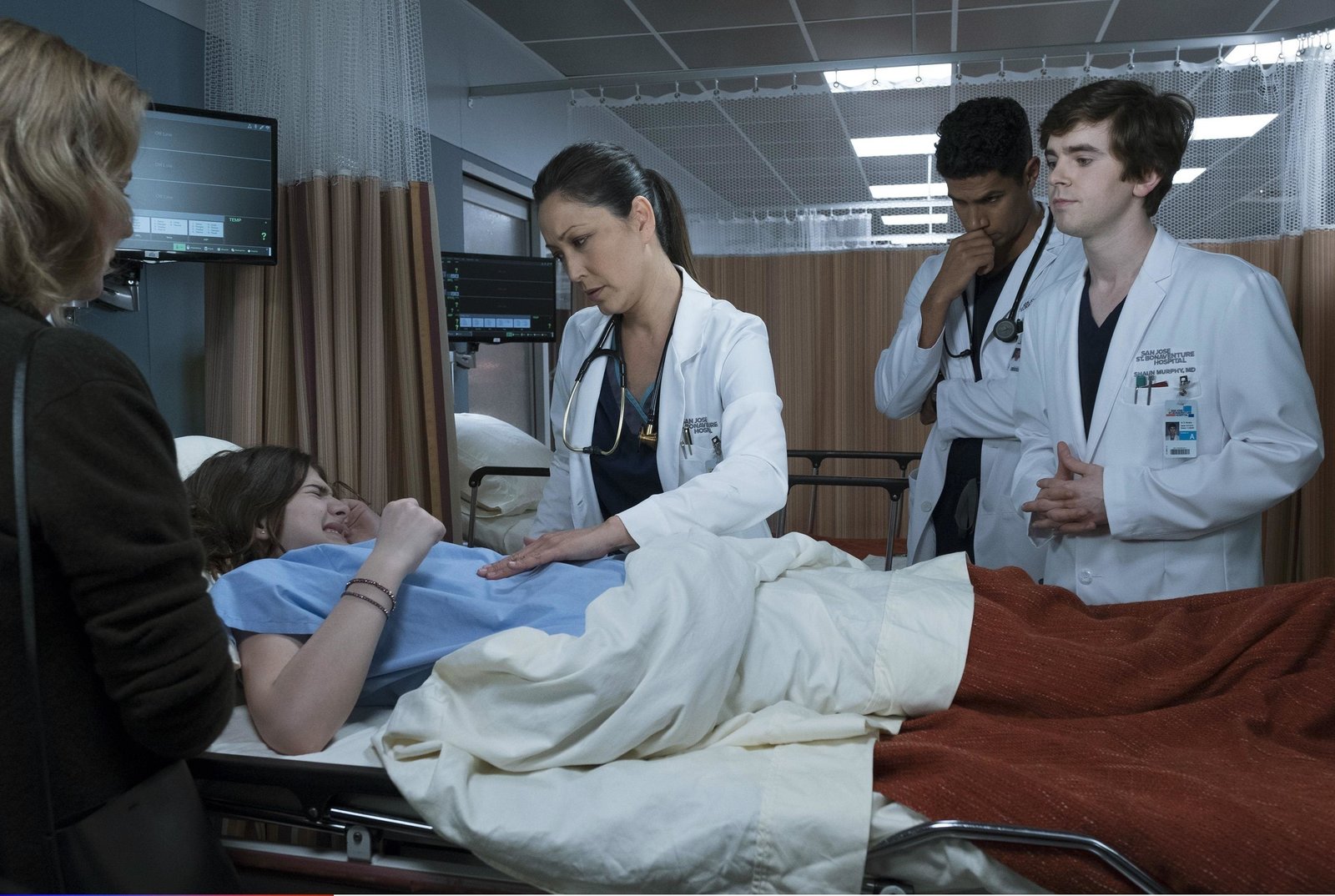 Die bessere Karotte"The Good Doctor", "Die bessere Karotte." Lea versucht Shaun klarzumachen, dass sein Wunsch mit ihr gemeinsam in eine große Wohnung zu ziehen, für ihre Freundschaft nicht gut wäre. Dr. Glassmans Genesung macht Fortschritte. Er hat keine Visionen von seiner Tochter mehr. Allerdings macht sich Shaun weiterhin Sorgen, da Dr. Glassman sich weigert aufzustehen. Shaun muss nun Geduld und Verständnis lernen. Unterdessen muss sich das Team von Dr. Melendez um eine magersüchtige Herzpatientin kümmern, deren Unterernährung ein großes Problem ist.Im Bild (v.li.): Tamlyn Tomita (Allegra Aoki), Hill Harper (Dr. Marcus Andrews), Nicholas Gonzalez (Dr. Neil Melendez), Antonia Thomas (Dr. Claire Browne).Bild: © ORF 1