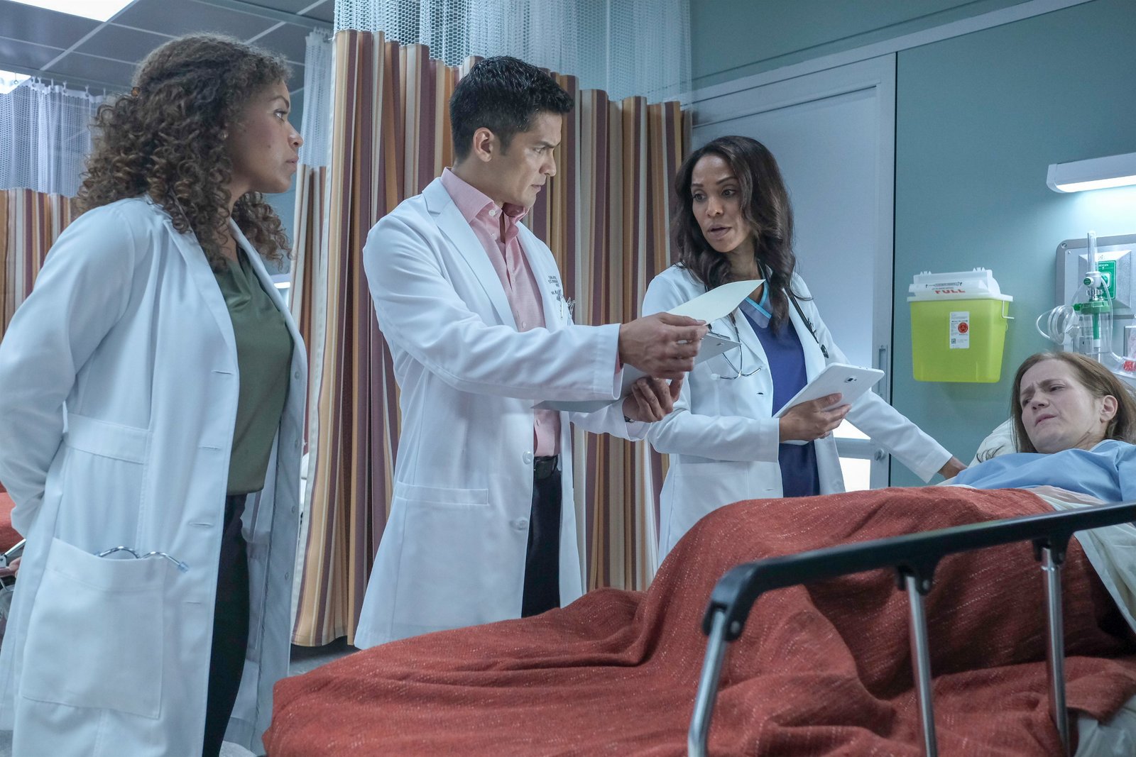 Risiko und Ertrag"The Good Doctor", "Risiko und Ertrag." Dr. Han, neuer Chefarzt der Chirurgie, ist eine Koryphäe, gleichzeitig stellt er hohe Ansprüche an sein Personal. Schon bald stechen Shauns Schwierigkeiten mit fehlendem Einfühlungsvermögen bei Angehörigengesprächen heraus. Da Shaun sich auf diesem Gebiet noch nicht verbessert hat, will Dr. Han ihn weiter beobachten. Erneut kann Shaun jedoch Pluspunkte sammeln, als er in einer Notsituation einen genialen Einfall hat und so das Leben des Neugeborenen rettet.Im Bild (v.li.): Nicholas Gonzalez (Dr. Neil Melendez), Will Yun Lee (Dr. Alex Park), Fiona Gubelmann (Dr. Morgan Reznick).Bild: © ORF 1