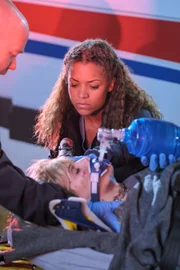 Massenanfall"The Good Doctor", "Massenanfall." In der Notaufnahme herrscht Hochbetrieb, ein Bus voller Hochzeitsgäste hatte einen schweren Unfall. Mehrere Schwerverletzte müssen versorgt werden. Unter anderem der Bräutigam. Sein Bein scheint unrettbar zerstört zu sein, doch Claire und Shaun finden eine alternative Behandlungsmöglichkeit, die jedoch mit Risiken verbunden ist. Nun müssen die nächsten Verwandten entscheiden. Unterdessen muss sich Jared um eine junge Frau mit massiven Verbrennungen kümmern.Im Bild (v.li.): Andrew Coghlan (Sanitäter), Devin Barker (Jenna), Antonia Thomas (Dr. Claire Browne).Bild: © ORF eins
