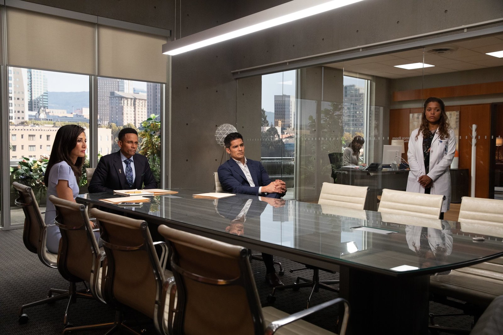 VerhandlungssacheL-R: Dr. Shaun Murphy (Freddie Highmore), Dr. Morgan Reznick (Fiona Gubelmann), Dr. Audrey Lim (Christina Chang)Bild: © TVNOW /© 2018