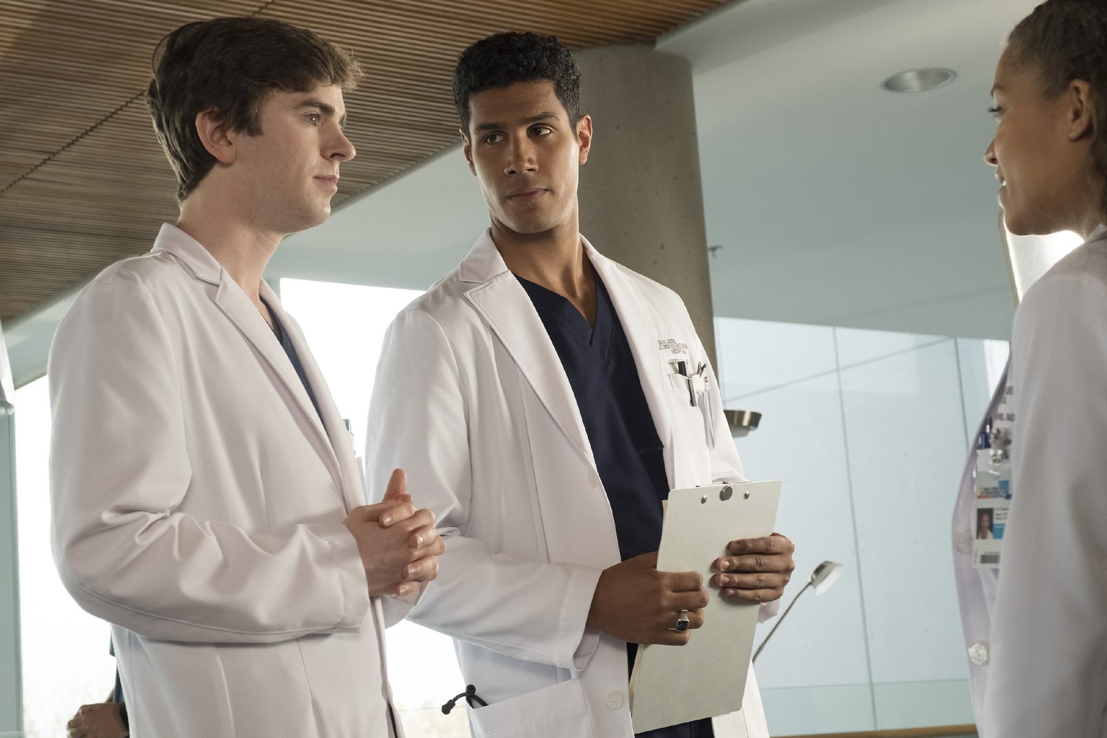 Freiheit oder TodDr. Shaun Murphy (Freddie Highmore, l.), Dr. Jared Kalu (Chuku Modu), Dr. Claire Browne (Antonia Thomas)Bild: © MG RTL D / © 2017 Sony Pictures Television Inc. and Disney Enterprises, Inc. All Rights Reserved.