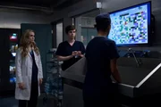 Fremde FedernDr. Shaun Murphy (Freddie Highmore, Rückansicht), Dr. Claire Browne (Antonia Thomas), Dr. Jared Kalu (Chuku Modu), Dr. Neil Melendez (Nicholas Gonzalez, r.)Bild: © MG RTL D / © 2017 Sony Pictures Television Inc