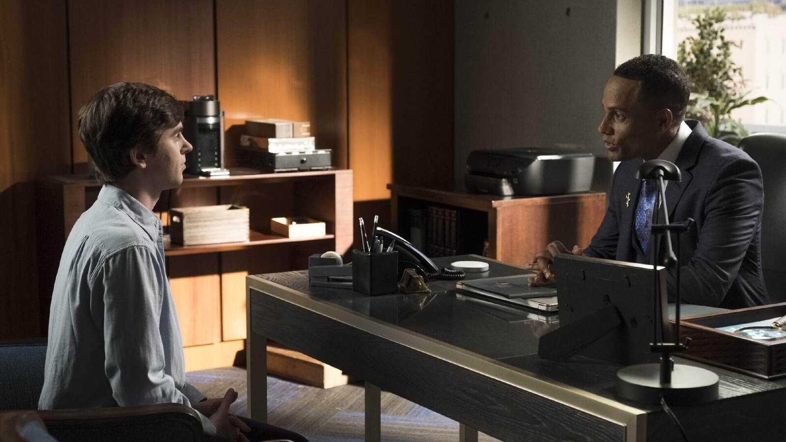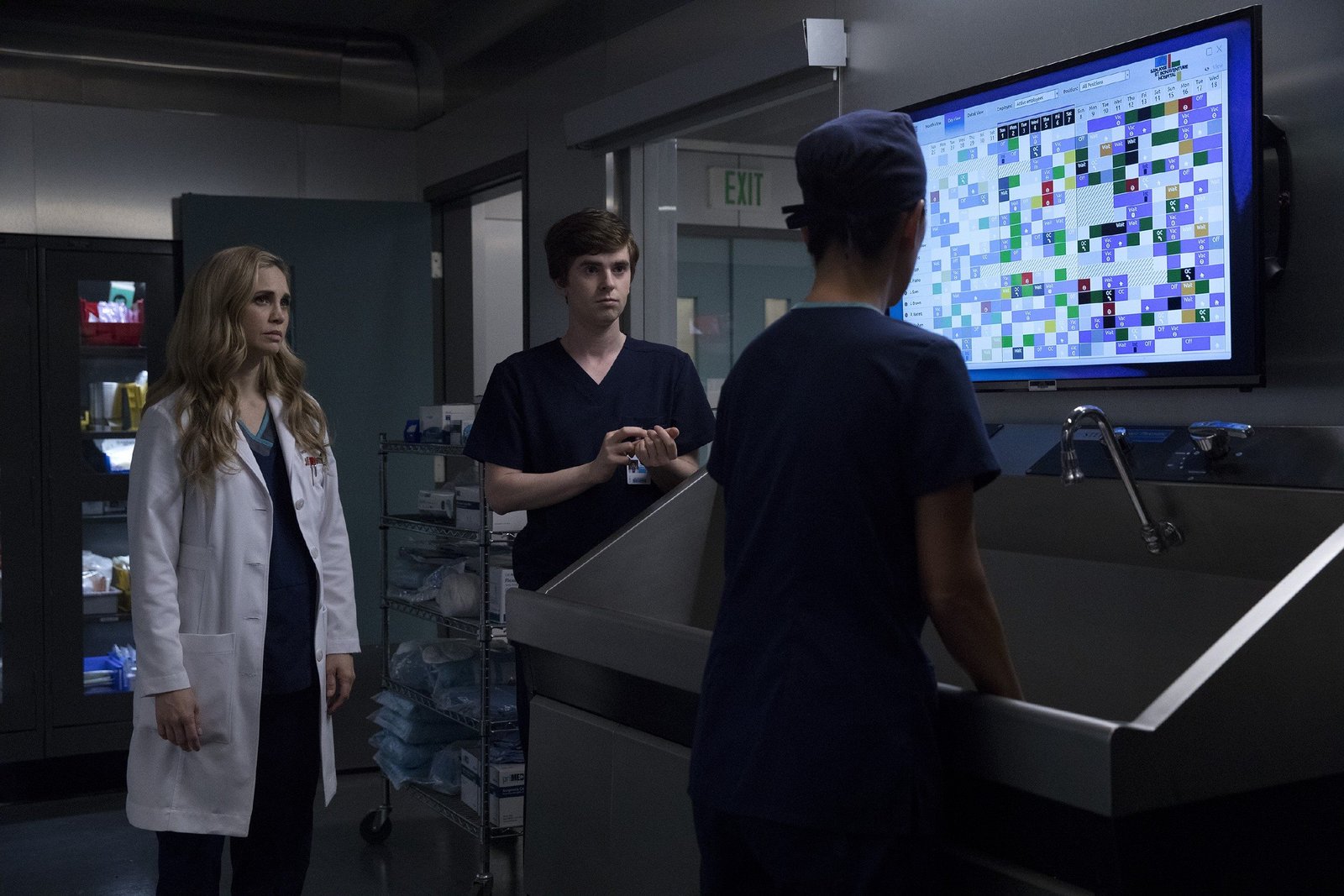 VerhandlungssacheL-R: Dr. Morgan Reznick (Fiona Gubelmann), Dr. Shaun Murphy (Freddie Highmore)Bild: © TVNOW /© 2018