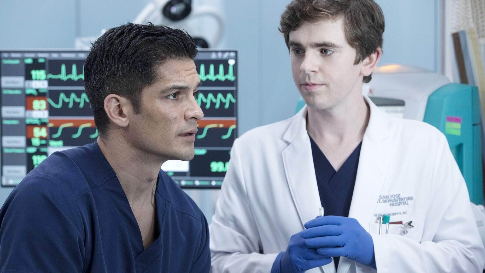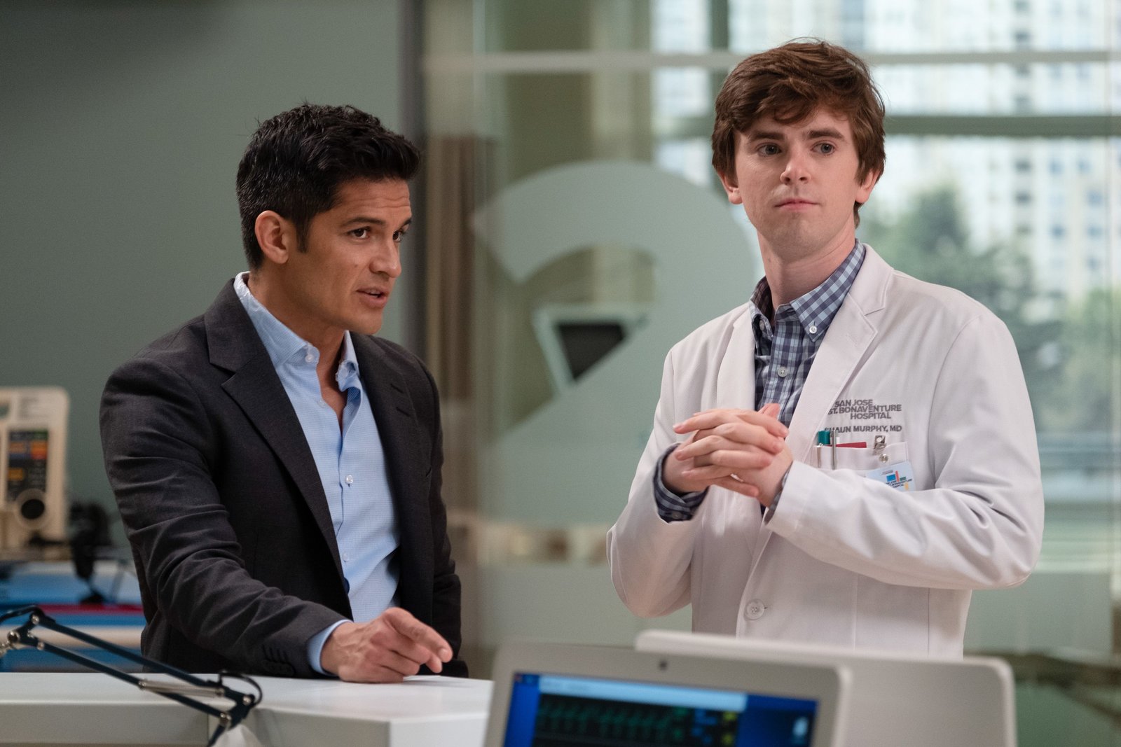 ApfelDr. Neil Melendez (Nicholas Gonzalez, l.), Dr. Shaun Murphy (Freddie Highmore)Bild: © TVNOW / © 2017 Sony Pictures Television Inc