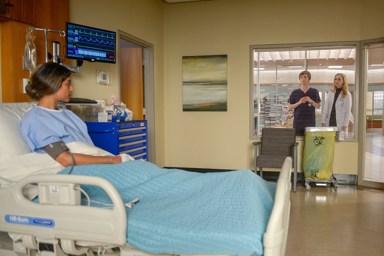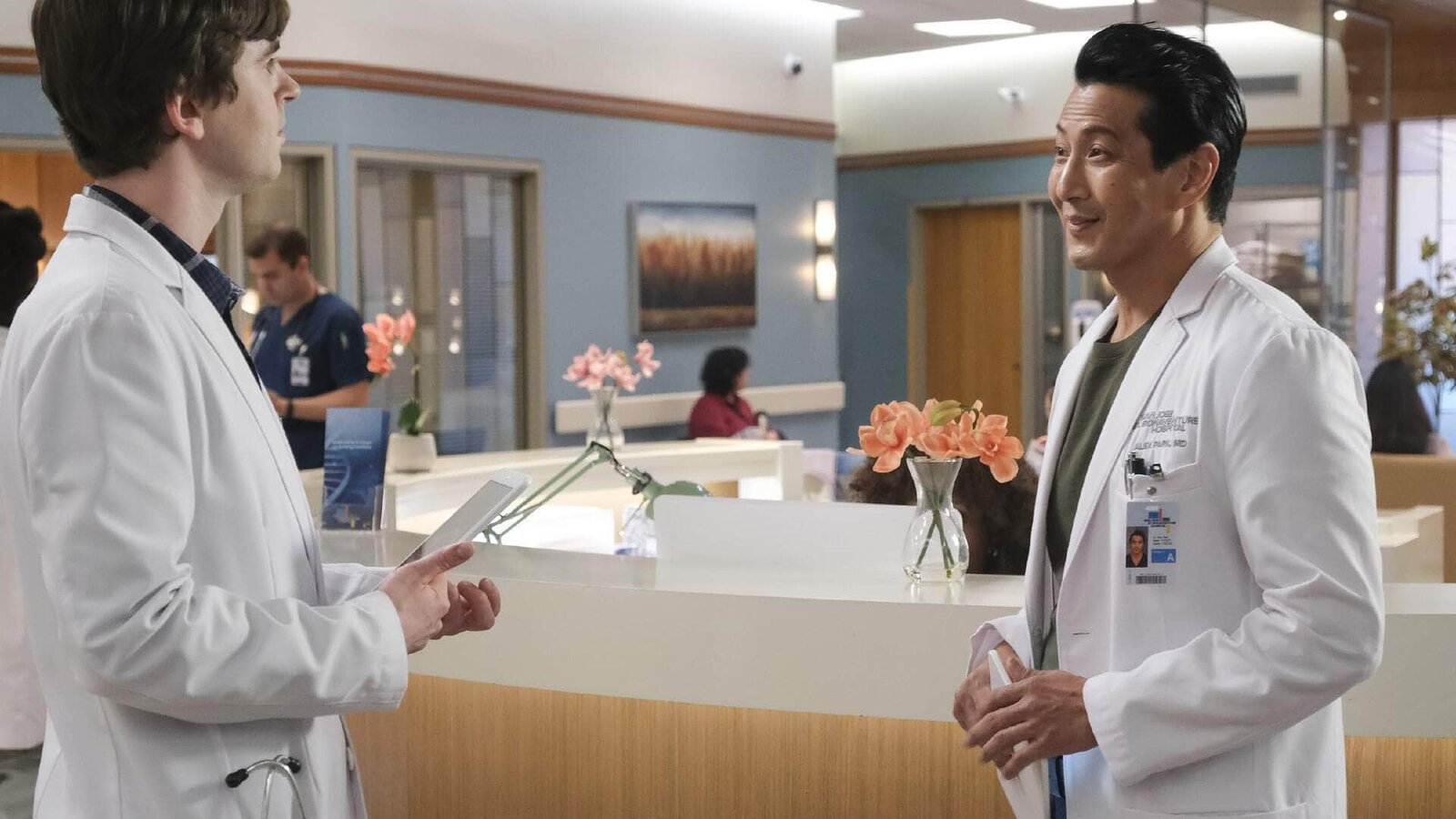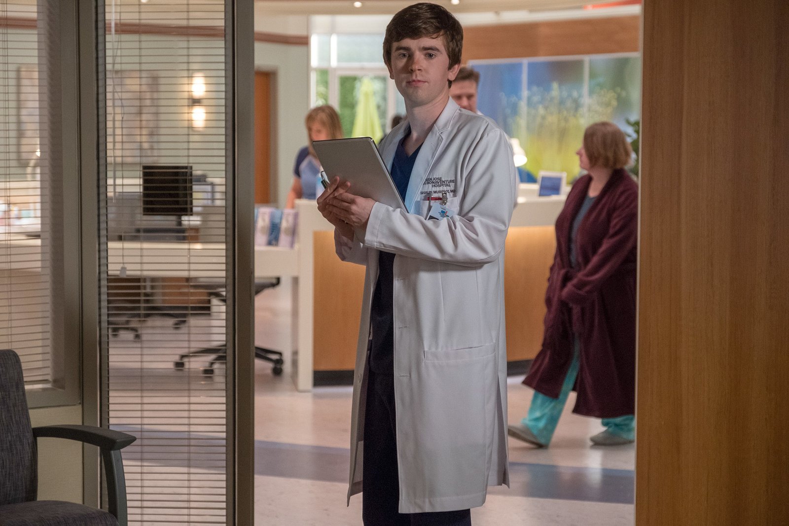 Fremde FedernDr. Shaun Murphy (Freddie Highmore, l.), Krankenschwester Fryday (Eve Gordon), Dr. Neil Melendez (Nicholas Gonzalez)Bild: © MG RTL D / © 2017 Sony Pictures Television Inc. and Disney Enterprises, Inc. All Rights Reserved.