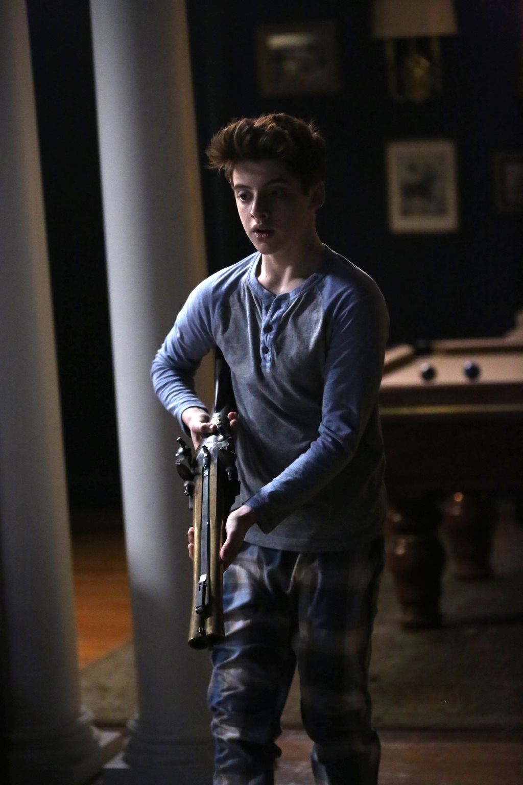 Der EindringlingMutig will Chip (Thomas Barbusca) den Einbrecher beseitigen. Er ahnt nicht, auf wen er schießt ...Bild: © 2017 Fox and its related entities. All rights reserved. Lizenzbild frei