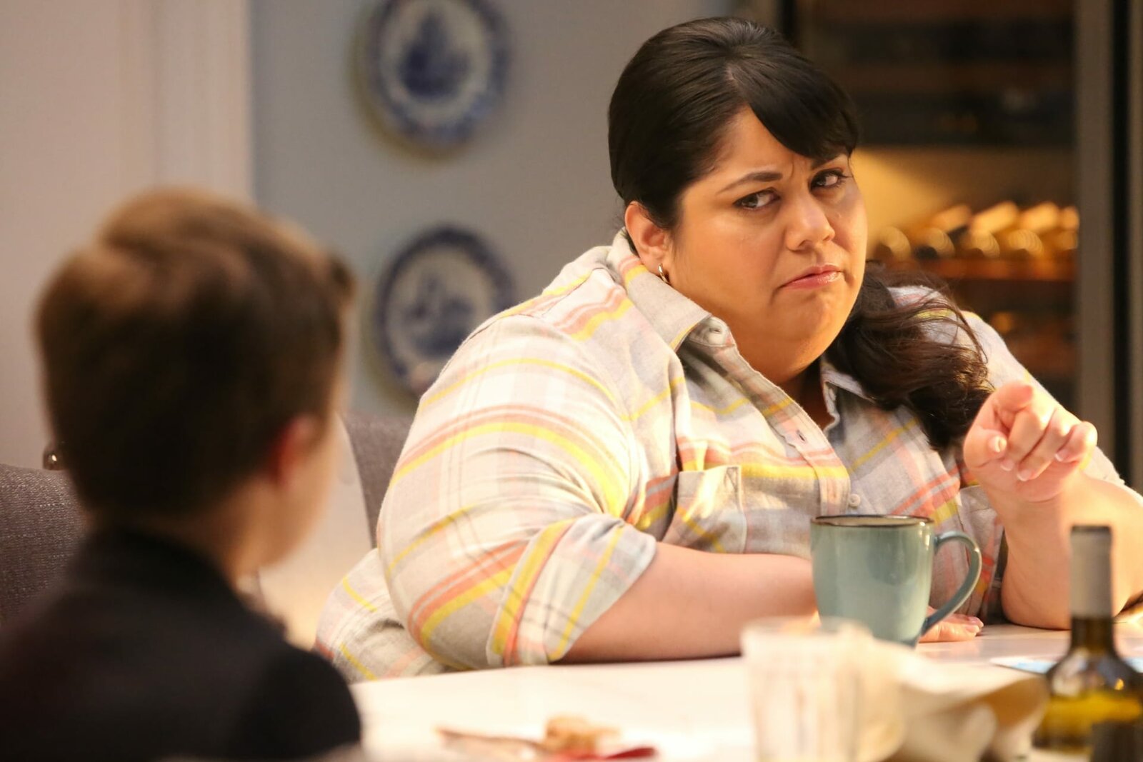 Die PetzeChip (Thomas Barbusca, r.) steht unter Druck. Er kann entweder seine Zukunft aufs Spiel setzten oder aber seine Jungs verraten. Hoffentlich kann Tante Mickey (Kaitlin Olson, l.) ihm helfen ...Bild: © 2017 Fox and its related entities. All rights reserved. Lizenzbild frei
