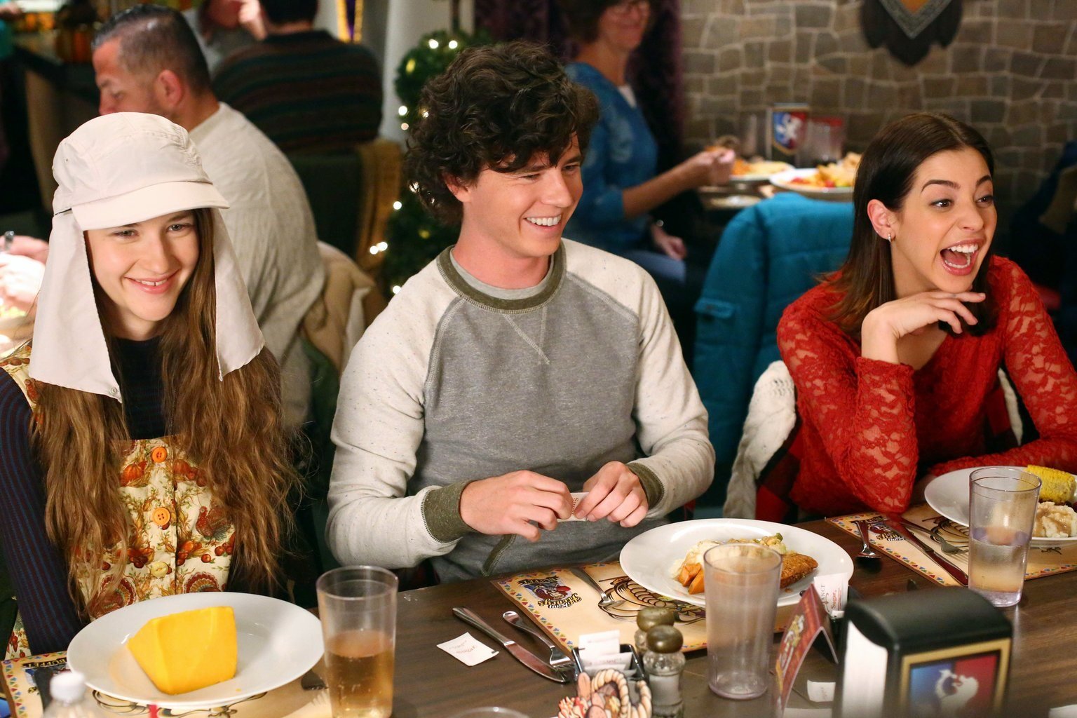 Das große Essen(v.l.n.r.) Cindy (Casey Burke); Axl (Charlie McDermott); Devin (Gia Mantegna)Bild: © Warner Brothers Lizenzbild frei