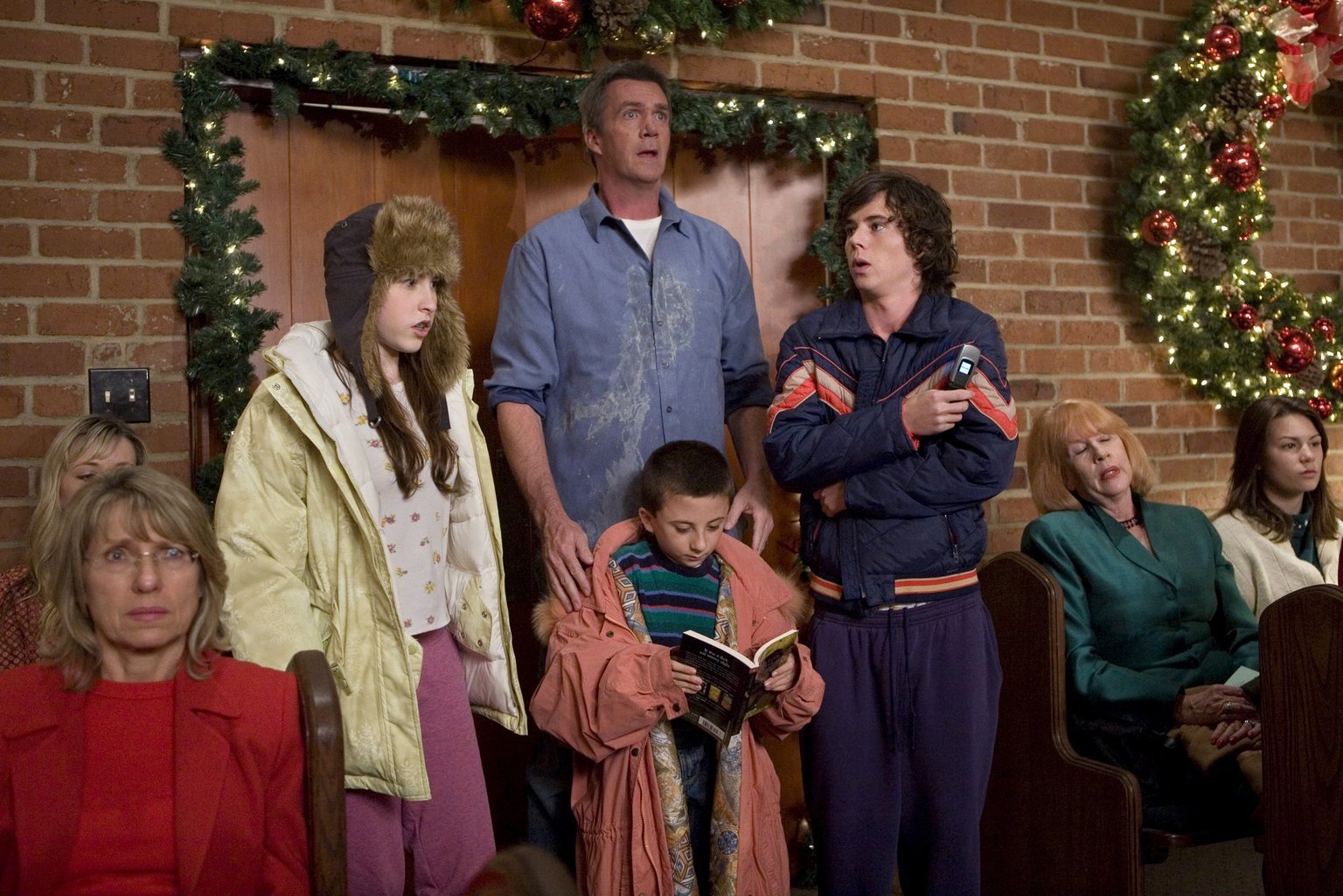 Das WeihnachtsgeschenkWeil Brick (Atticus Shaffer, l.) an der Bibel zweifelt, soll Reverend TimTom (Paul Hipp, r.) ihm auf Sues (Eden Sher, M.) Wunsch hin die Bedeutung von Weihnachten erklären. Unterdessen hat Mike Probleme damit, sein Weihnachtsgeschenk vor Frankie zu verbergen ...Bild: © Warner Brothers Lizenzbild frei
