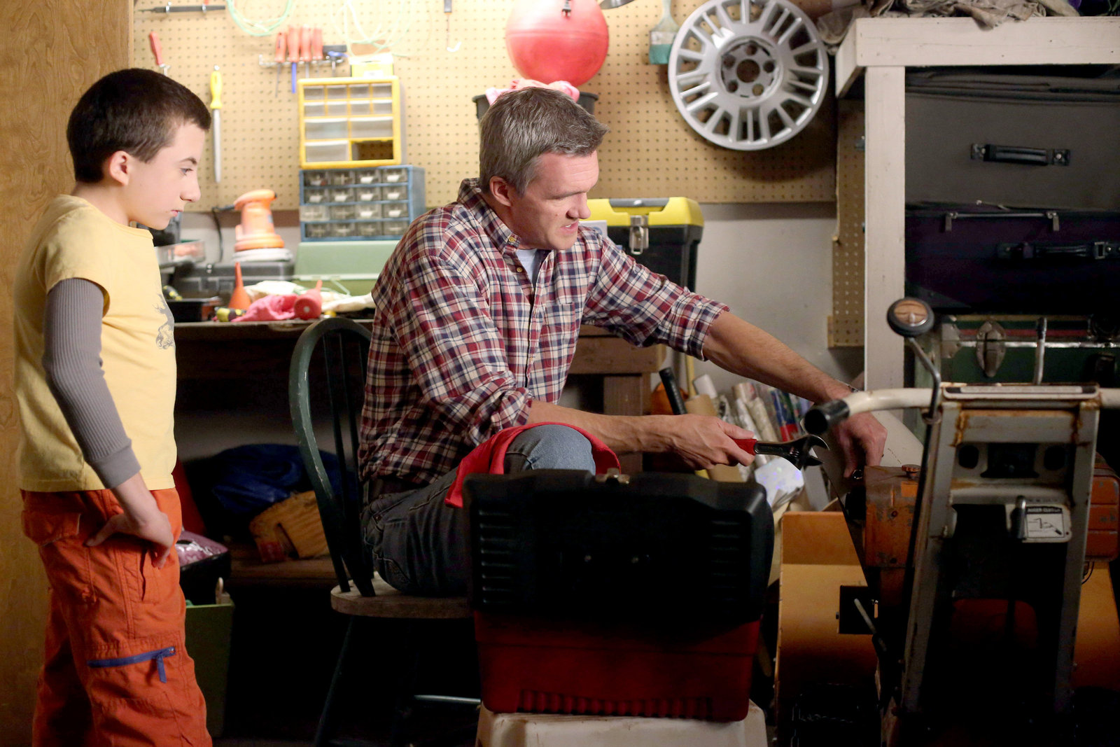 Das Lächeln"The Middle", "Das Lächeln." An Bricks Schule sind Tablet-Computer der letzte Hit. Brick lässt nichts unversucht, um zu erreichen, dass seine Eltern ihm ein solches Gerät kaufen. Frankie und Mike haben jedoch Geldsorgen, nicht zuletzt, weil immer noch unklar ist, ob Axl nun wirklich ein Sportstipendium erhält. Ein ehrgeiziges Ziel hat sich auch Sue gesteckt. Für ein Schulprojekt möchte sie den Beweis erbringen, dass Lächeln ansteckend ist.Im Bild (v.li.): Atticus Shaffer (Brick Heck), Neil Flynn (Mike Heck).Bild: © ORF