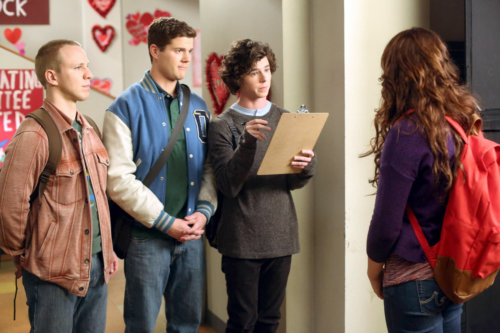 Das Heck-JahrSue (Eden Sher, 2.v.r.) will als Vorsatz fürs neue Jahr etwas Eigenes auf die Beine stellen und bemüht sich darum, ein Cheerleading-Team für die Wrestler zu etablieren. Doch nur Ashley (Katlin Mastandrea, 2.v.l.), Ruth (Grace Bannon, l.) und Becky (Jessica Marie Garcia, r.) wollen mitmachen ...Bild: © Warner Brothers Lizenzbild frei