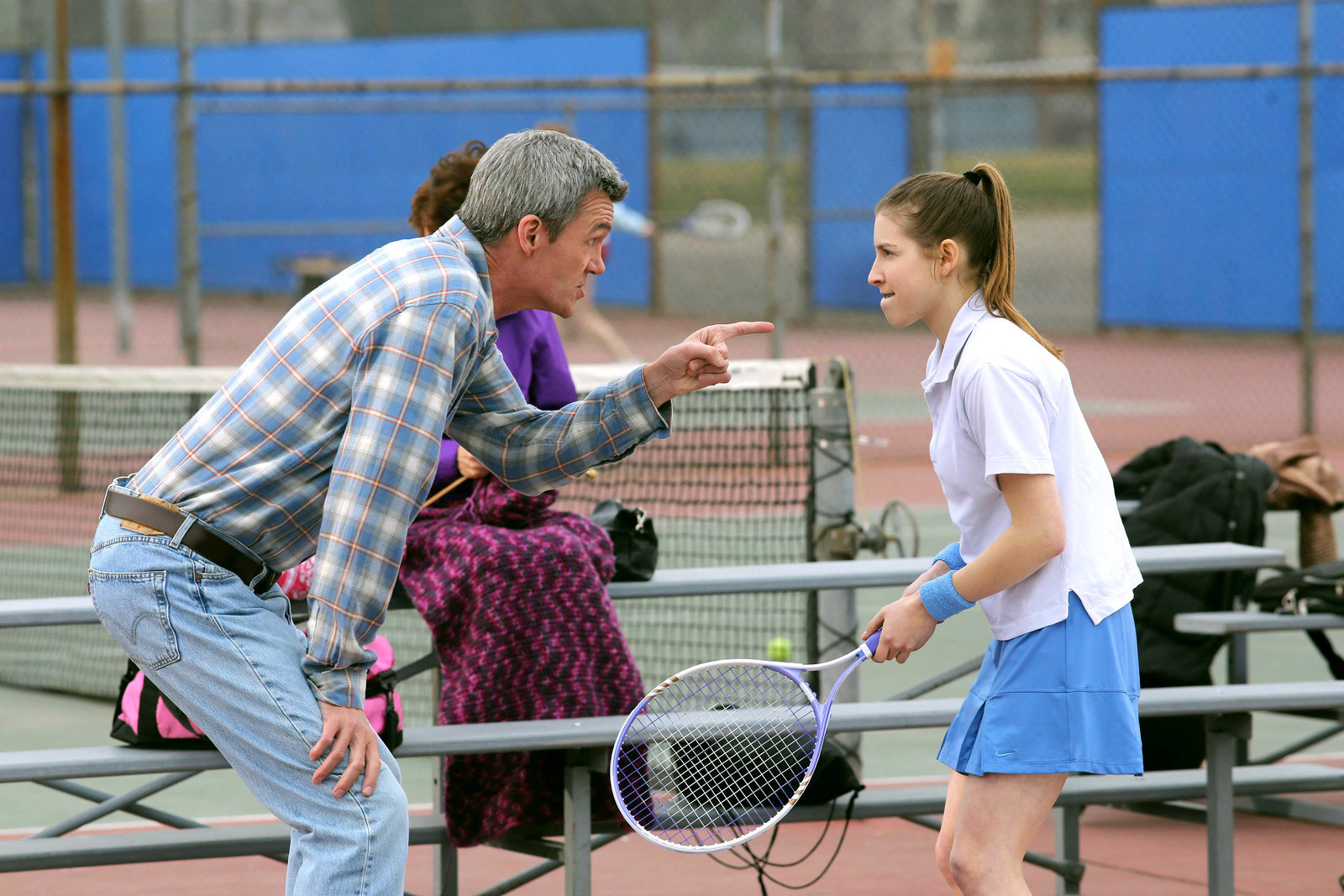 Der TestMike (Neil Flynn, l.) und Frankie (Patricia Heaton, 2.v.l.) haben mit ihren Kindern schwer zu kämpfen: Brick (Atticus Shaffer, r.) wird in der Schule gemobbt, Sue glaubt irrtümlich, zur Cheerleaderin berufen zu sein, und Axl faulenzt, anstatt zu lernen. Doch plötzlich scheint es Hoffnung zu geben ...Bild: © Warner Brothers Lizenzbild frei