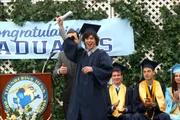 Die ReifeprüfungAxls Abschlusszeremonie: Die Geschwister Brick (Atticus Shaffer, 2.v.r.) und Sue (Eden Sher, r.) sowie Vater Mike (Neil Flynn, l.) unterstützen ihren Absolventen, nur die emotionale Mutter Frankie (Patricia Heaton, 2.v.l.) ist noch nicht bereit, loszulassen ...Bild: © Warner Brothers Lizenzbild frei