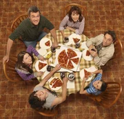 Der Hochzeitstag(1. Staffel) - Bei ihnen ist immer was los: (v.l. im Uhrzeigersinn) Sue (Eden Sher), Mike (Neil Flynn), Frankie (Patricia Heaton), Bob (Chris Kattan), Brick (Atticus Shaffer) und Axl (Charlie McDermott) ...Bild: © Warner Brothers Lizenzbild frei
