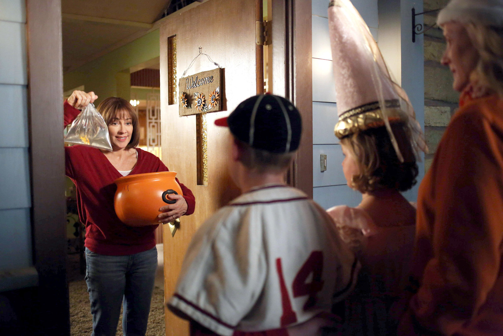 Das zweite Halloween-FestFrankie (Patricia Heaton, l.) übernimmt auf Wunsch der anderen Eltern nur widerwillig die Aufgabe, die Kinder aus Bricks sozialer Gruppe an Halloween zu beaufsichtigen und tut sich damit keinen Gefallen. Unterdessen versucht Mike, Sue in Sachen Jungs zu beraten ...Bild: © Warner Brothers Lizenzbild frei