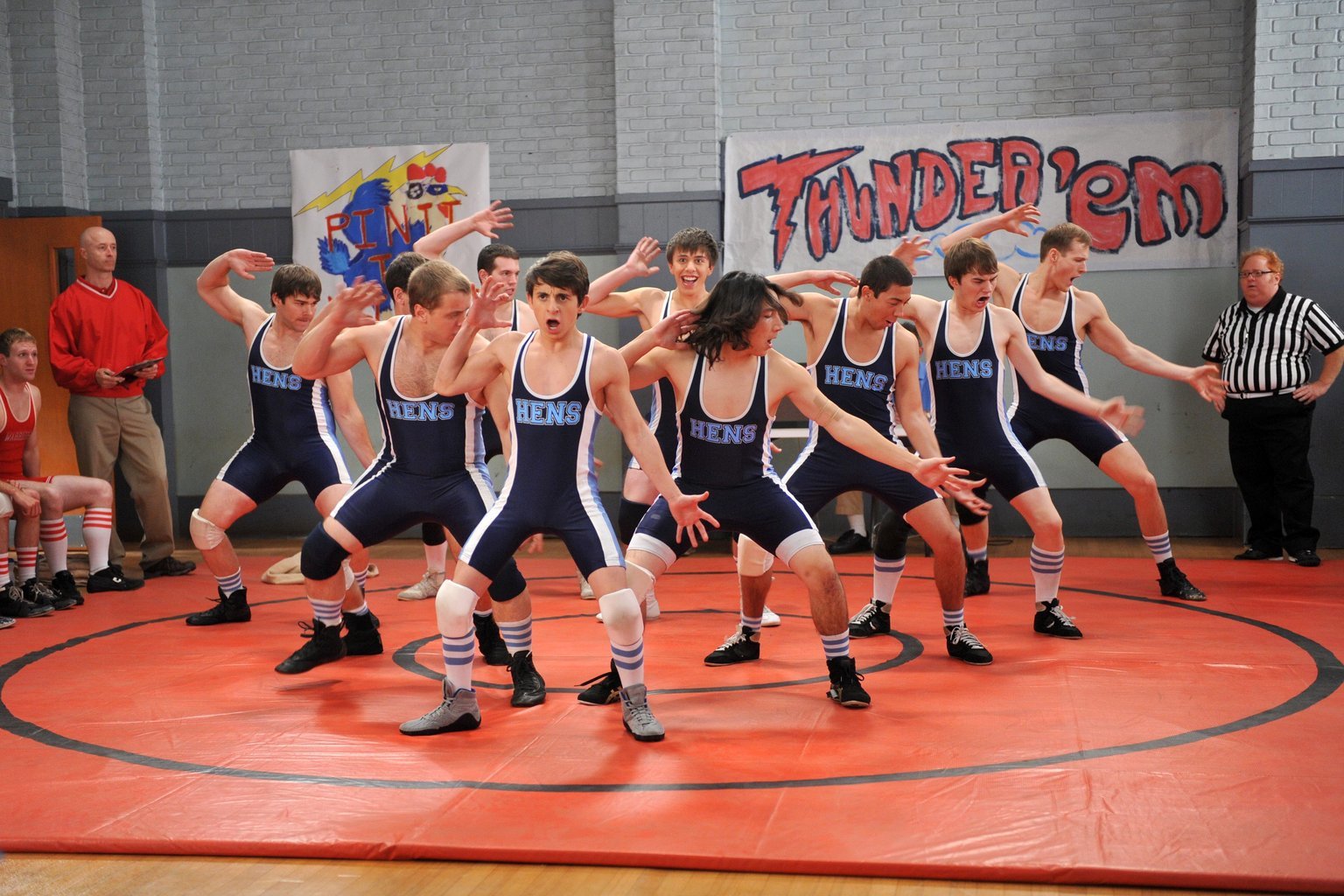 Das SchulprojektSue traut ihren Augen nicht, als die Performance ihrer Cheerleaderinnen plötzlich von Matt und seinem Wrestling-Team unterbrochen wird. Denn Matt (Moises Arias, vorne) will Sue etwas Wichtiges mitteilen ...Bild: © Warner Brothers Lizenzbild frei