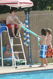 Die BrückeEigentlich wollte Axl (Charlie McDermott, l.) nur Rettungsschwimmer werden, damit er die heißen Frauen im Bikini begutachten kann, doch nervige Kinder kommen ihm da etwas in den Weg ...Bild: © Warner Brothers Lizenzbild frei