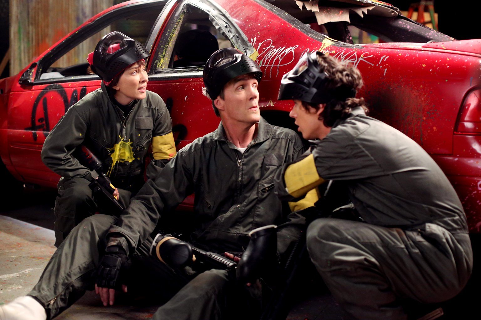 Der besondere TagFrankie (Patricia Heaton, l.) und Mike (Neil Flynn, 2.v.l.) bieten ihren Kindern an, jeweils einen Tag allein mit ihnen zu verbringen. Während Axl (Charlie McDermott, r.) mit seinen Eltern Paintball spielt, hat sich Sue 17 Aktivitäten für sie ausgedacht. Brick wiederum will zu einer Sci-Fi-Convention gehen ...Bild: © Warner Brothers Lizenzbild frei