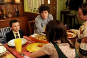 Das Thanksgiving-FestWird das Thanksgiving-Dinner trotz aller Katastrophen doch noch zum Erfolg? Zumindest haben sich alle um den Tisch versammelt: Brick (Atticus Shaffer, vorne), Sue (Eden Sher, vorne l.), Brad (Brock Ciarlelli, 2.v.vorne l.), Axl (Charlie McDermott, 2.v.hinten l.), Mike (Neil Flynn, hinten), Big Mike (John Cullum, 2.v.hinten r.), Tante Ginny (Frances Bay, 2.v.vorne. r.) und Tante Edie (Jeanette Miller, vorne r.) ...Bild: © Warner Brothers Lizenzbild frei