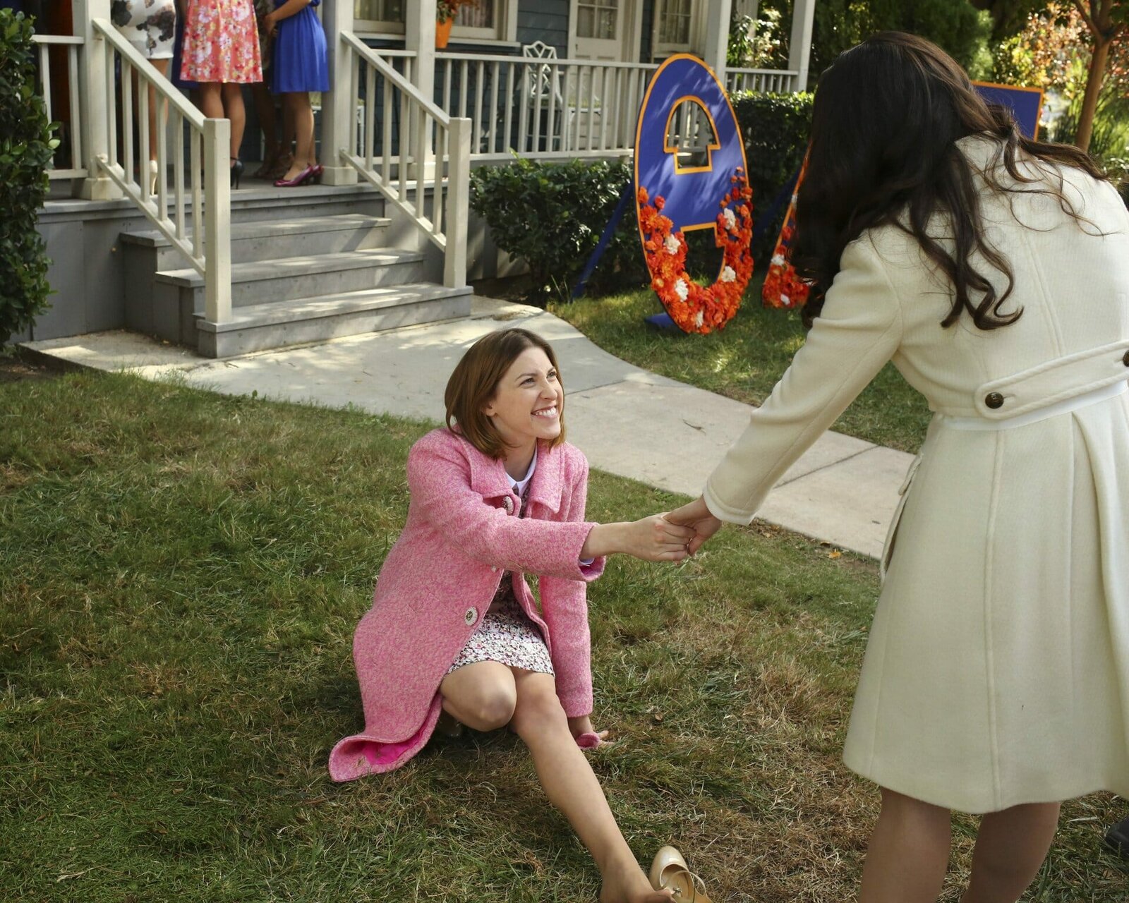 Das laute SchweigenSue (Eden Sher, hinten) ist begeistert, als Brad (Brock Ciarlelli, vorne) plötzlich bei ihr im Collage auftaucht ...Bild: © Warner Bros.