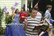 Das StraßenfestBricks (Atticus Shaffer, r.) Lehrer macht Frankie (Patricia Heaton, l.) und Mike darauf aufmerksam, dass er ihren Sohn für "sozial eingeschränkt" hält ...Bild: © Warner Brothers Lizenzbild frei