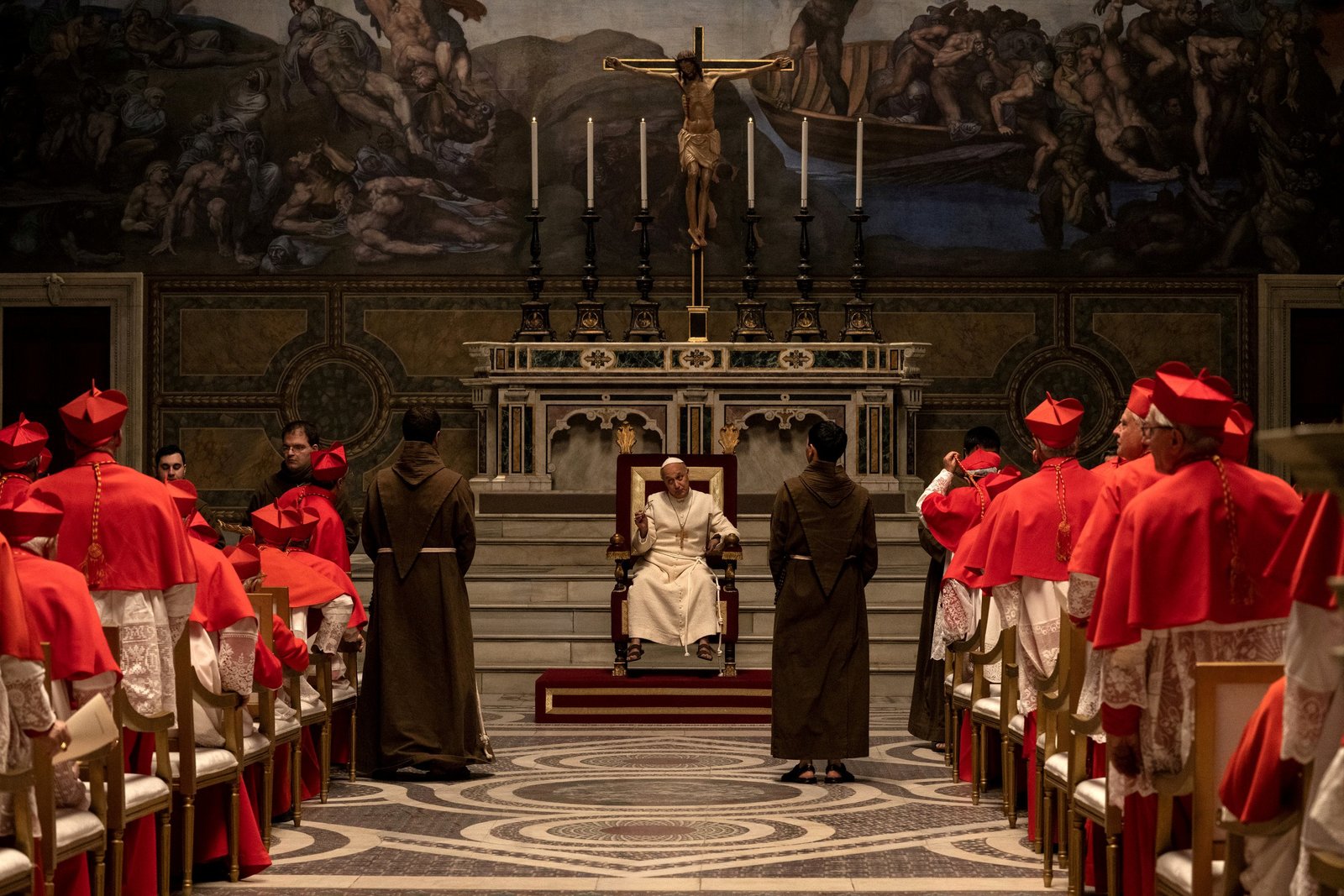 Episode 2Set of "The New Pope" by Paolo Sorrentino. 19/12/2018 sc.210- ep 2 in the picture Silvio Orlando, Cécile De France, Javier Camara, Maurizio Lombardi and Ramon Garcia. Photo by Gianni Fiorito This photograph is for editorial use only, the copyright is of the film company and the photographer assigned by the film production company and can only be reproduced by publications in conjunction with the promotion of the film. The mention of the author-photographer is mandatory: Gianni Fiorito. Set della serie Tv "The New Pope" di Paolo Sorrentino. Nella foto Silvio Orlando, Cécile De France, Javier Camara, Maurizio Lombardi e Ramon Garcia. Foto di Gianni Fiorito Questa fotografia è solo per uso editoriale, il diritto d'autore è della società cinematografica e del fotografo assegnato dalla società di produzione del film e può essere riprodotto solo da pubblicazioni in concomitanza con la promozione del film. E’ obbligatoria la menzione dell’autore- fotografo: Gianni Fiorito.Bild: © Sky Atlantic