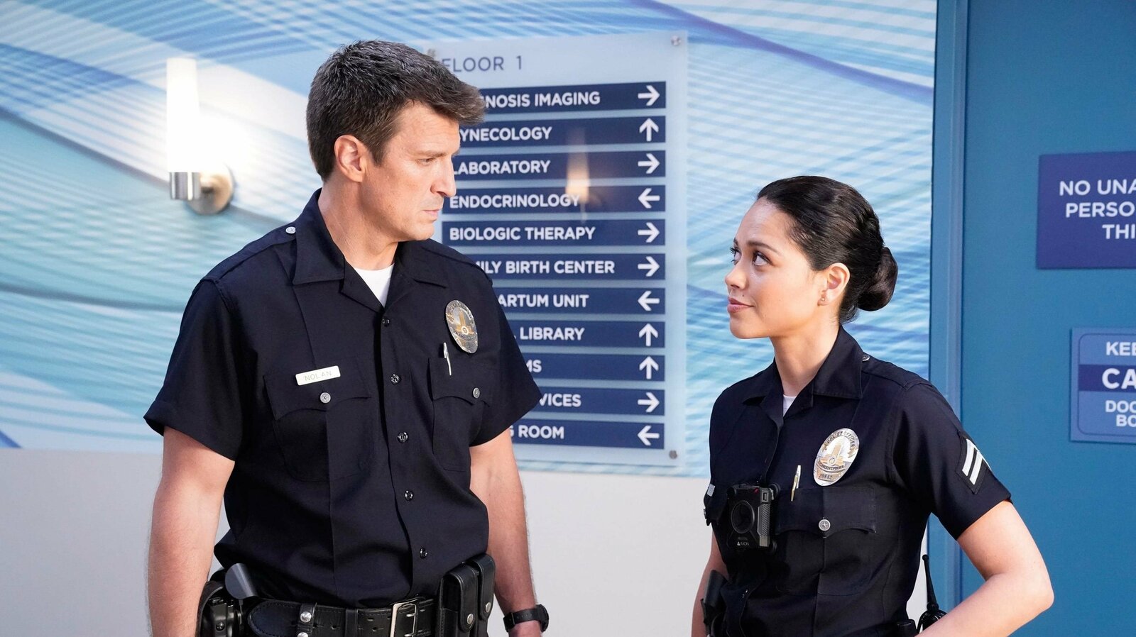 - Am LimitJohn Nolan (Nathan Fillion) und Angela Lopez (Alyssa Diaz) fahren Streife.Bild: © ZDF und Eric McCandless.