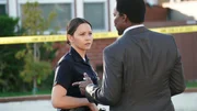 - Hollywood auf StreifeAngela Lopez (Alyssa Diaz) und ihr Rookie Jackson West (Titus Makin Jr.) unterhalten sich im Verhörraum.Bild: © ZDF und Richard Cartwright.