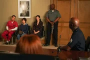 Die ChecklisteSergeant Wade Grey (Richard T. Jones, r.) und sein Polizeiteam bestehend aus Tim Bradford (Eric Winter, 3. v.l.), Talia Bishop (Afton Williamson, 4. v.r.), Alyssa Diaz (Angela Lopez, 3. v.r.) und Zoe Andersen (Mercedes Mason, 2. v.r.) erhalten Unterstützung von den Rookies Lucy Chen (Melissa O'Neil, 2. v.l.), John Nolan (Nathan Fillion, 4 .v.l.) und Jackson West (Titus Makin, l.).Bild: © ZDF und Ed Herrera.