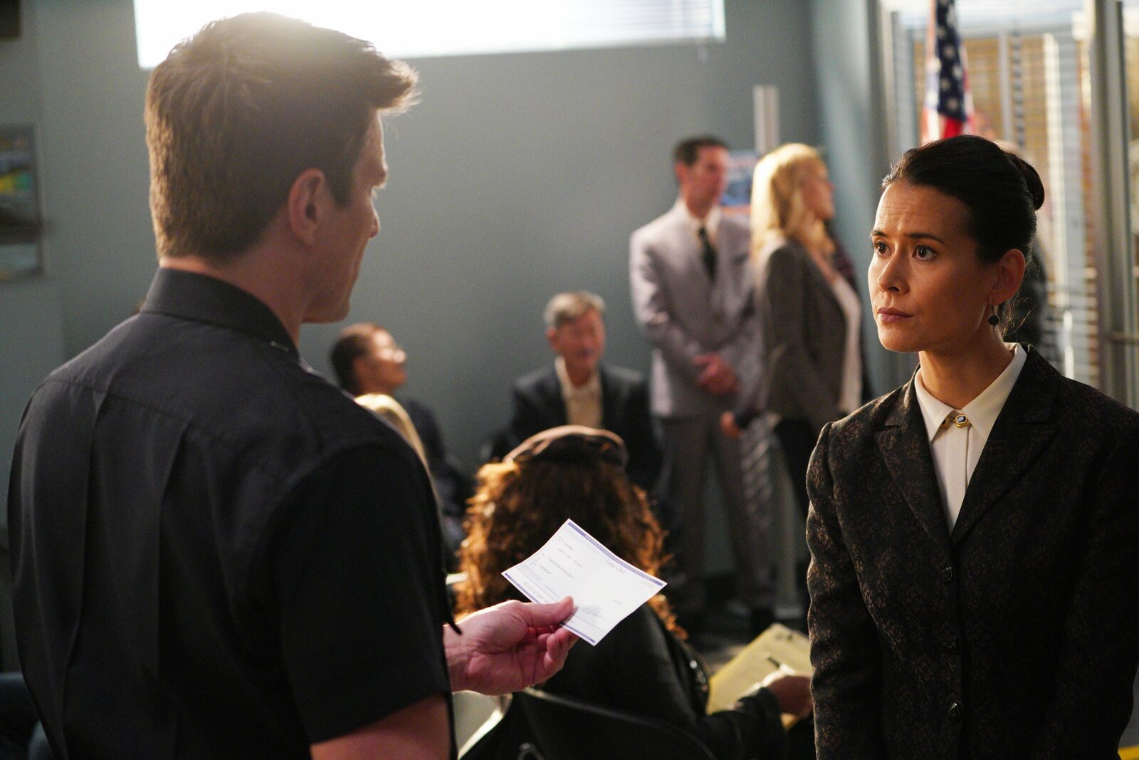 AufarbeitungSusan Baker (Shi Ne Nielson) übermittelt John Nolan (Nathan Fillion) eine wichtige Botschaft.Bild: © ZDF und Christopher Willard.